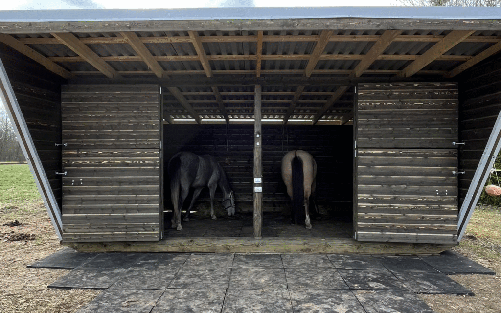 JANNE T-2U (34,8m2) hind koos paigaldusega 4800 EUR-i + KM. Hinnale lisandub transport. Varjualuse paigalduseks objektil kulub üks kuni kolm päeva. Tarneaeg alates tellimuse kinnitamisest on kuni 14 kalendripäeva. Tarneaeg sisaldab varjualuse detailide tootmist, transporti objektile, paigaldust. Uksed on riividega suletavad. Luugid on haakidega suletavad. Võimalik paigaldada vajadusel PC materjalist aknad. Vahesein jagab varjualuse pinna kaheks. Varjualuse nelja nurka on paigaldatud metallkronsteinid ja veoaasad traktori või muu tehnikaga vedamiseks. Varjualune on ehitatud 100x200mm süvaimmutatud puitjalastele. Seinad on ehitatud 32x100mm puitkarkassil ja kaetud seest ning väljast poolpunn välisvoodrilauaga UTV 19X145mm. Varjualuse puitosa on viimistlemata. Kliendil on võimalik tellida vastavalt oma soovile viimistlus, näiteks: värv, muldvärv, tõrvaõli, terrassiõli jms. Katus on ehitatud 50x150mm sarikatele ja 32x100mm roovitusele ning kaetud trapetsprofiilplekiga TP45 tsinkkatte või polüestervärviga (värvitooni saab klient valida RR kataloogi alusel). Lisana on võimalik tellida põrand, uksed, soolahoidikud, söötmisrestid, kinnitusrõngad, kogu puitkarkassi süvaimmutus.